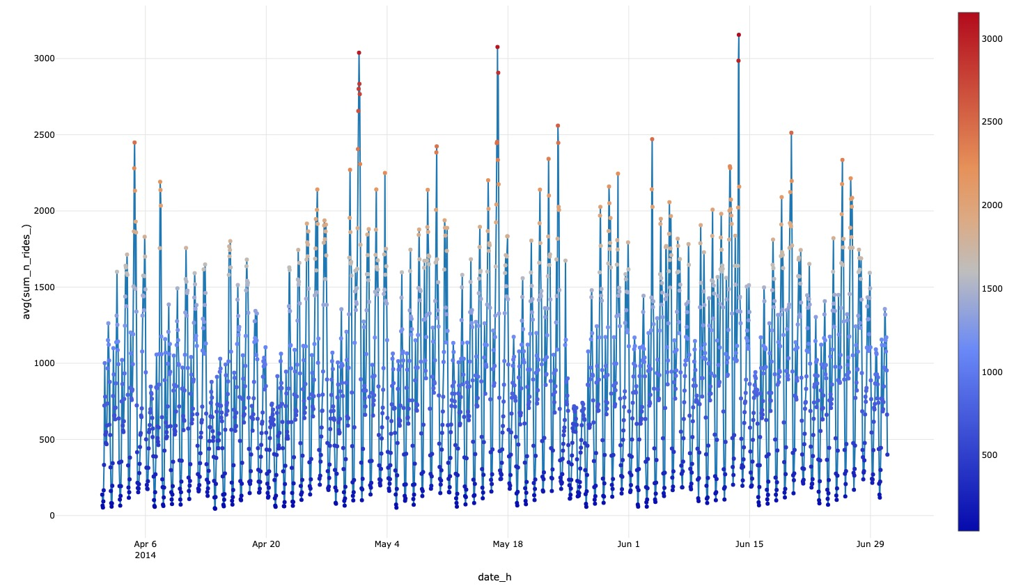 We added two columns: 'date_h', which records the date and hour when the demand was made, and 'sum_n_rides_', which was assigned a value of 1.