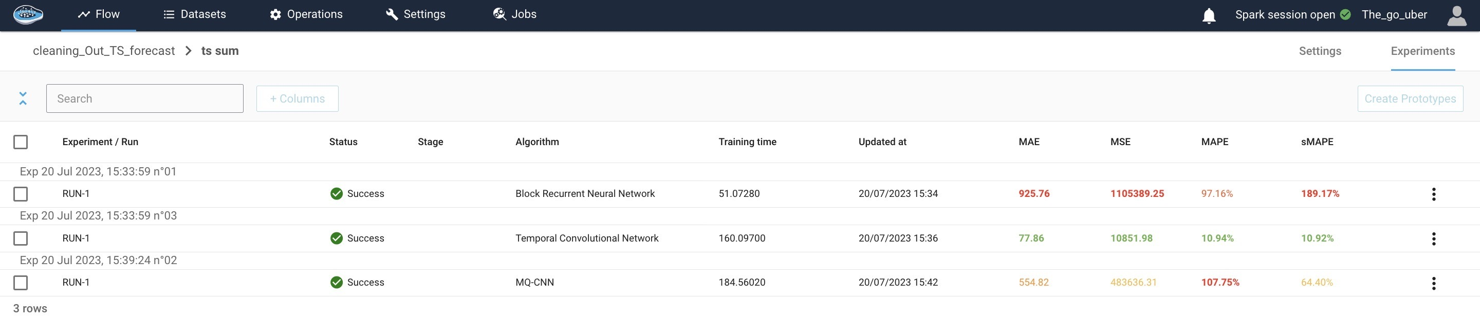 For the fare prediction dataset, we use a random splitting method, while for the demand forecast dataset, we apply an ordered method based on time. Once all settings are in place, click the Save and Run button to execute the split operation.