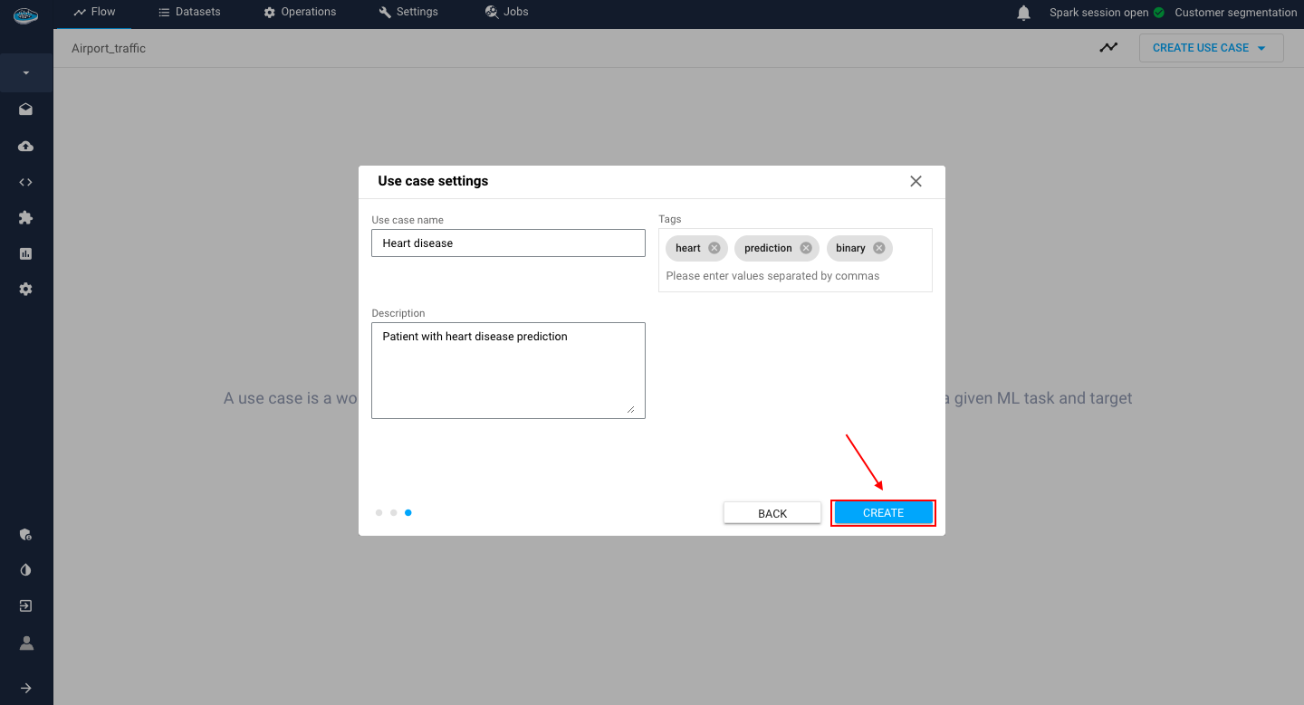 Final step: Type out the name (required), description and tags (optional) of your new use case to finally create it.Use case settings step